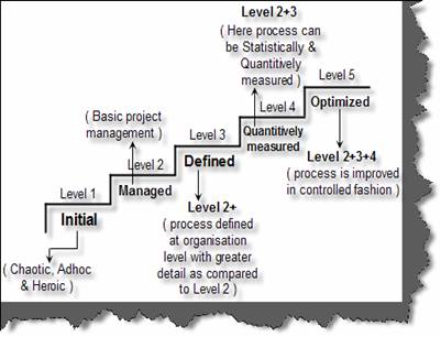 Maturity Level 1(Initial):- In this level everything is adhoc. Development is completely chaotic with budget and schedules often exceeded. In this scenario we can never predict quality and the project are run by heroes’. If the heroes go off the whole project goes for a toss.