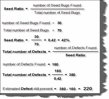 formulae i.e. Number of seed bugs found divided by total number of seeded