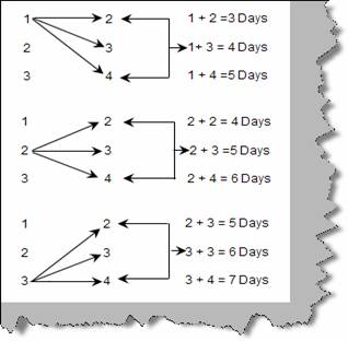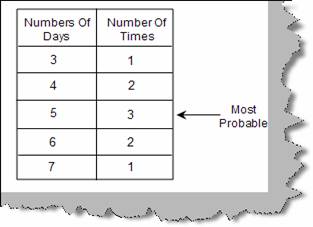 Now let’s collect the number of times the days have occurred. Below figure ‘Number of Possibilities’ shows that 5 days has occurred the most times. There is a high possibility that task1 and task2 will be completed in 5 days.