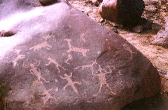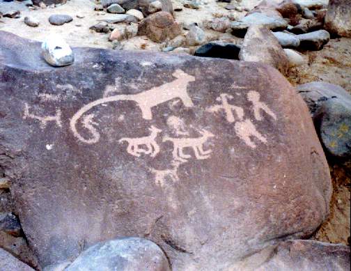 Chinchíllidos: Mediante la técnica de percusión en sus modalidades de cuerpo lleno y picado lineal, se han identificado la figura de una vizcacha bien perfilada en cuanto a la concepción de la cabeza, cuerpo y en especial de la cola.