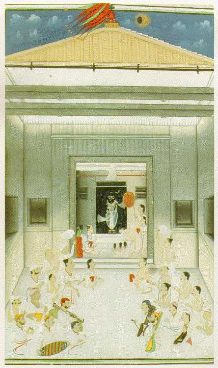When the actual eclipse starts, sit in front of Thakurji and recite Kirtans.