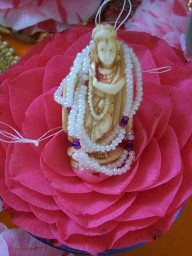 an ivory icon of Madan Mohanji in a red camellia 19kb