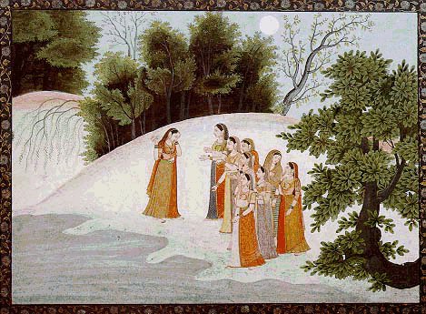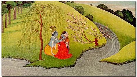 the methods used in ancient India to cool the fires of love - flowering woods, river,