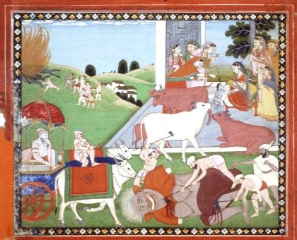 with the tail of a cow (top right hand of the painting). Due to her huge size, gopas