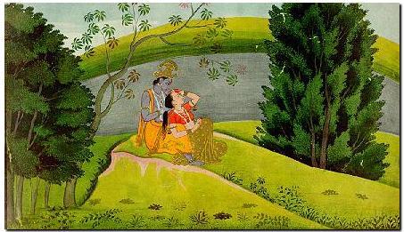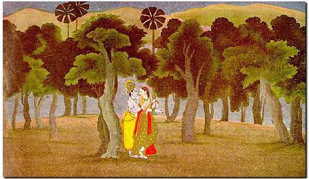 Series of paintings showing the loving lilas of the Lord in the woods of Vrindavan. 28kb