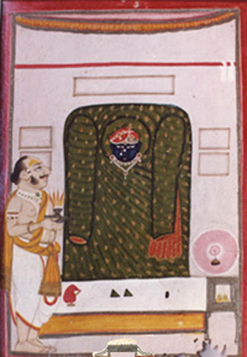 black ! From the pichoi in the background, thada-vastra, the ghardar-jama of the Lord, his