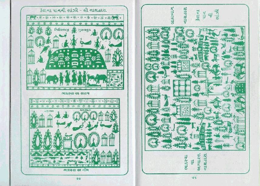 9th Nandagava, Barasana depicting the two towns by various bangalas, various ponds, Baithakji, gopies, peacocks, monkeys