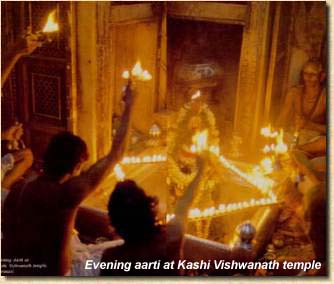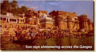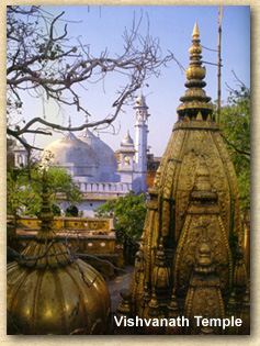 Lord Shiva is linked to the most ancient legends relating to Varanasi. In times beyond time, this was a vast jungle where the Lord Shiva manifested Himself as Lord VishvaNath - Lord of the whole world. At the confluence of the rivers Varan and Asi, a small town was created, centring its self around the ancient Linga of Lord VishvaNath. In times to come, this became a major temple town and a centre of great learning. Most monastic orders have at least a token temple or a monastery here. Students here can learn from ancient scriptures and compare the various philosophies of all the great masters of our past. After the muslim invasion of India, the great universities at Taxashila and Nalanda were destroyed by the Islamic zealots. They could not appreciate the beauty of the philosophical insights offered by a more ancient civilisation than their own. Of the great ancient universities, Varanasi is the only one that has managed to survive the attack of both the muslims and the christian rulers. However, many of its temples suffered badly during the Islamic rule of India. Some of the more ancient and sacred sites & temples were cleared to make way for the main mosque that now stands on the highest hill in Varanasi. Lord VishvaNath's temple also migrated at this time and moved further down stream, nearer to the ManiKarnika ghat of the city. The city has innumerable temples, monasteries and the world famous bathing ghats. There are practically thousands of small shrines - often just an alcove set in someone's home or in a niche above street level - and hundreds of temples, old and new. As this is one of the most sacred cities in all India, people have often built temples here as a way if earning merit for the "here-after". Kings, queens and rich merchants used to endow these monuments with lands to take care of them, but as the land laws have changed, many of these institutions have become very poor and some of the more ancient buildings are in a very dilapidated state. The newer buildings are often garishly studded with marble and the intimacy of the atmosphere is torn asunder by blaring music from various loud speakers, each competing with the others in a battle to exult its own brand of devotional music. Monasteries are equally numerous as temples here. Once upon a time, they too were well looked after and well cared for. In the modern India where commercialism is the be all and end all of the masses, no one cares much for the monks and learned pundits of old. The state of some of these monasteries is very sorry indeed. A few have braved the modern world and are smiling in the face of adversity. The number of monks and students is not what it used to be at one time, but this is still a great city of learning. The city has numerous ghats where the pilgrims can bathe and cleanse their mind and body of all sins. Celebrating the various historical and legendary achievements of the past, these ghats have witnessed the passage of time, as ceaseless as the Ganges. The various ghats and buildings along the river front are as indifferent to the lives of men as the wind which blows across its vast banks. Ghats are a vast bank of steps, set along the right-hand side of the river (looking down stream), that lead to the water's edge and enter into the holy waters in a smooth, seamless fashion. The steps are generally a series of steps punctuated by broad terraces where pilgrims can rest after a bath. Here, along the various ghats, seekers seek God; young students learn the sacred scriptures by heart; pundits muse on the nature of the Lord in silent contemplation; musicians practice their serene tunes (the likes of sitar maestro Pundit RaviShankar who call Kashi home and plays on the ghats and roof tops of the temples by the river side in the early morning); brahmin priests ply their trade amongst throngs of pilgrims; guides - new and old - shout out their services to tourists and pilgrims alike; pilgrims pray and bath in an attitude of absolute reverence; locals bathe and rush up the wet steps to get to work; an occasional man sits alone and views the whole tamasha of this world as it floats past the great ghats of the Ganges at Varanasi. Shri Vallabh passed much of his childhood in this ancient-most city. His father migrated here from South India and Shri Vallabh was taught by the various luminaries of his times in this great city of "Divine Light".