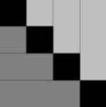 ....Sew one dark (path) 2 1/2" X WOF fabric to one 6 1/2" X WOF strip of light fabric. Press seam to light fabric. Sub-cut into twelve 2 1/2" wide units. |