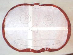 ![]() Iron the shiny side of the freezer paper to your pumpkin fabric. Leave at least 1/2" of fabric on all sides for the seam allowance. (If you are using cardboard template, center the template on your fabric, trace around it with a making pencil or chalk, then cut out 1/2 inch beyond the making for a seam allowance.) |