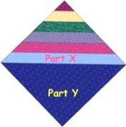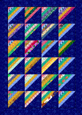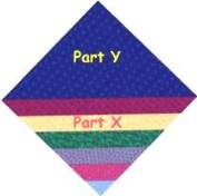 ........![]() Now when you are doing this in a scrappy flavor, the strips will also be opposite, but that does not matter and only adds more variety to your quilt. This will be explained more later, just a little information here to start out with. The striped part we will call "Part X" throughout the turtorial. The plain triangle we will call "Part Y". |