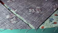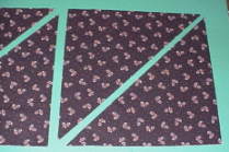 1) These are the triangles you will use for this method. All of the outside edges are on the straight of the grain instead of the bias like in the tube method. This gives you less stretch. |