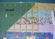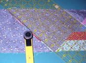 ![]() Measure the length of the diagonal from edge of strip to edge of strip with another ruler. Another method to determine the size of the square to cut is to take the width of the strip times 1.414. If your strip is 6 3/4 " wide: