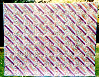 This was made by a little different technique, it is reversible, but you can get an idea of the difference in how the color effects the whole quilt. This one is dark and rich while the one below is light and spring like. |