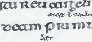 | This rounded script evolved quickly into the more common Insular pointed script; the oldest document in which it is written dates from the 730s. |