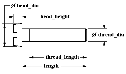 | Nominal Dia Thr Pitch | Thread Dia | Head Dia | Head Height | Length | Thread Length |