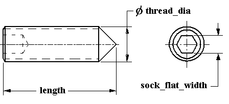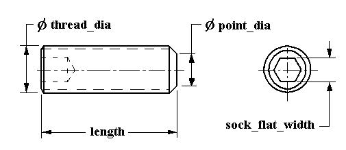 | Dia Thrd | Point Dia | Sock Flat Width | Length |