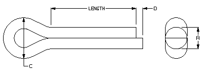| NOMINAL SIZE | A Diameter | C Head Diameter | D Prong Length | LENGTH |