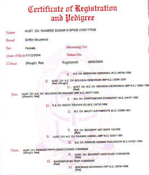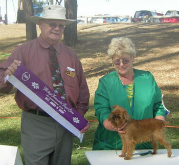| Spice shown winning the Bitch CC at the Griffon Bruxellois Club of Victoria's Specialty Show, April 08. Judge: Mr David Fifield "Cricklewood Griffons, New Zealand" Best In Show went to Ch Raweke Buster Brown |