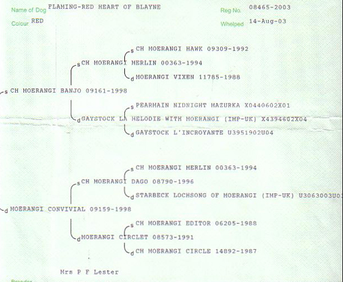 pedigree for Flaming-Red Heart of Blayne (imp NZ)