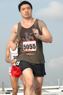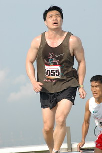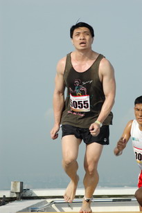 Like a drunkard, I staggered on for a few paces and collapsed at the edge of the roof. A concerned volunteer came up to me and asked if I was feeling OK. I said yes. She said the air during stair climbing wasn�t as good as the open air for normal races. I guess she was right. And any bad air was a disadvantage because of my weak lungs.