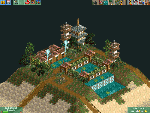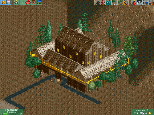 This is a lodge in the mountain area of the theme park. I just started working on this section, so there is not too much. I like the design though :-).