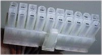 Os outros dois tipos de conectores(para alimentar drives,winchester,CDROM) são comuns aos dois padrões e usam as tensões de 5V(fio vermelho) e 12V(fio amarelo):
