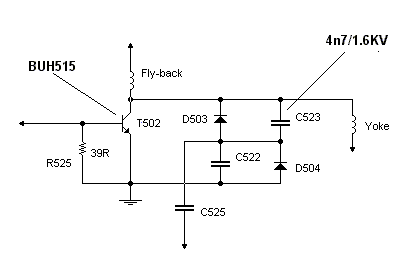 para baixo provocando a queima do transitor de saída horizontal T502(BUH515) ficando este em curto.É