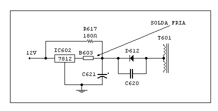 tensão de 12V no circuito oscilador.Na fonte estava a causa do problema:uma solda fria