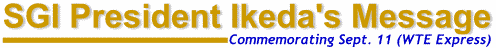 Please advance with courage, turning the tragic date of Sept. 11 into a day of rebirth and fresh beginnings for America, a day on which you strengthen your determination and bonds of solidarity to achieve kosen-rufu.