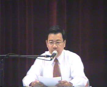 Mr. Tan Kar Bin delivering speech from SGM Director