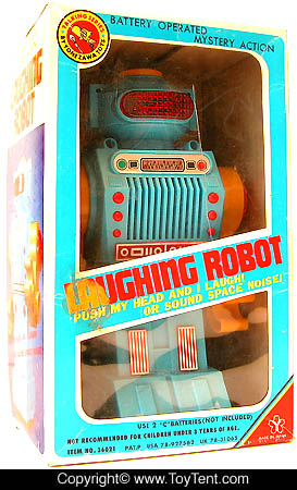 Nombre: Kike. Robot hablador. Tipo: De pl�stico, funciona con pilas(2). Mide 22 cm. Fecha: �?. Fabricante: Clim. Localidad: Ibi, Alicante. Acciones: Movimiento lineal y circular. Luces en la cara. Detalles: No es original. Es una copia del robot Laughing Robot de la empresa japonesa Yonezawa. |