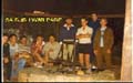| Not a good photo, but lots of meaning for everyone who was there. 1 Med Bty "rowers" gathering in "Bloubos" on artillery range to spend the 1st night in the "veld" during Basic training. Marched fullkit from the base to Bloubos, appox 20km. Instructors brought in food the next day on the back of a Bedford, and with the "roofride" almost tipped the Bedford; it went around the corner of Bloubos on only 2 wheels! A few frightened "rowers" on the back, covered with porridge, etc. Made big fires this night. |