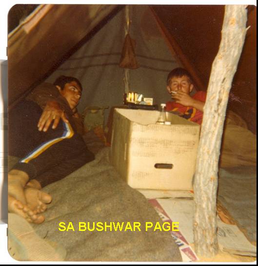 | My and Kosie Smit' inside our bivvie at night during the Botswana border training. Kosie was from Aurora in the Western Cape, and was RTU'ed (returned to unit), as he did not completed the training successfully. |