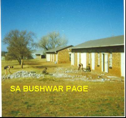 | Laying paving in front of our bungalow during Easter weekend 1978. "Biet genaai" during Easter while most other buddies were on weekend pass. Our bungalow was in the last row, just up from the Vehicle Park |