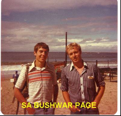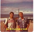 | Civvystreet at last! Drove my 250cc Yamaha scrambler all the way from Pretoria to Durban, and met up with army buddy Theo Thiart (right), we seen here on Durban beach - cool shirts, in fashion again now! |