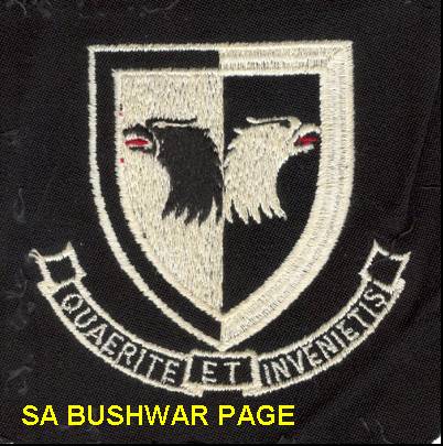 | Insigna for JARIC, "Joint Air Reconnecance Intelligence Centre"; or "Geelvis" GLVIS - "Gesamentlike Lugverkennings Inligting Sentrum" as it was known in Afrikaans. We worked here for a few months, attenting an aerial photo interpetation course, and compiling target dosiers of strategic enemy installations in Angola, Zambia and Mozmbique. Of particular interest were: 1. Post strike evaluation of bomb damage on terrorist basis in Angola and South West Zambia during Operations "Rekstok" and "Safraan". 2. Compiling target dosiers of all important road and rail bridges in Angola, and Mozambique. 3. Compiling target dosier for Special Forces (Recces) of the Road bridge north of Luanda. When the strike went in, the target bristlelled with AA guns and enemy forces, clear sign of enemy double agent in our midst, soon to be exposed as a senior Navy Captian spying for the Russians. Name?? 4. Photo interpetation for Ops ??? by Rhodesia on Aldeia de Barragem in Mozambique, as well as Mapai |