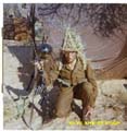 | Myself with fullkit and A44 radio, during Coin-Ops training. Radio contact is made with the base for a Sitrep (Situation Report). Faf, holding the handset, later became a medical doctor in Capetown. |