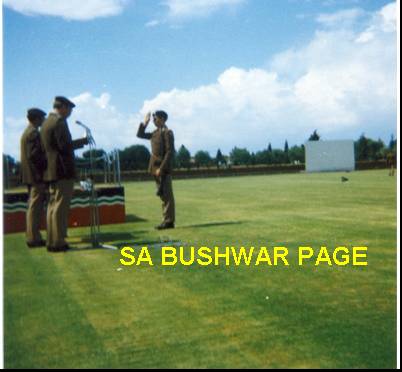| At last! - qualifying parade to become 2nd lieutenant in the Artillery Corps. Parade held at Potchefstroom military base. Here receiving the officers rank from the OC. |
