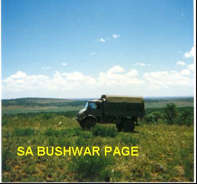 | While manning the artilley OP Post, we were amased to see this Unimog driving all the way to the top of the "koppie". It negotiated boulders, trees, dongas, etc, and was so much better that the Bedfords, Garries (Jeeps). The SADF at this stage (1978), only had a few Unimogs. |