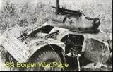 | The same bulldozer as above, from the front. It took several direct hits as is evident from the damage. |