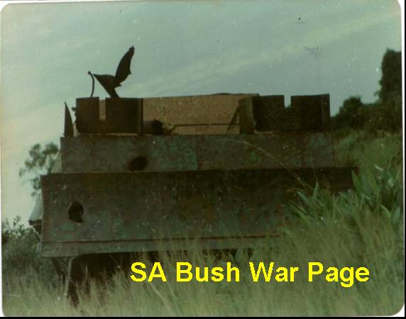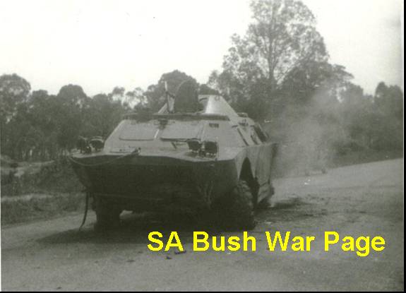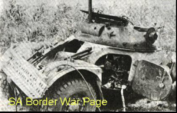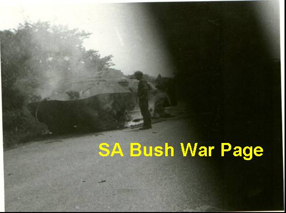 | SADF Eland 90mm armoured car knocked out during the Ebo battles in Angola, Ops Savannah 1975. |