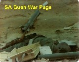 | A dead MPLA soldier amongst ammunition boxes, and a US-made M72 66mm LAW rocket launcher in the background - Ops Savannah. |