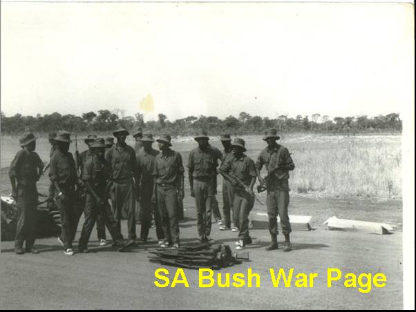 | FNLA troops being kitted out by the SADF with brandnew FN 7.62mm assualt rifles, new uniforms, and new "tekkies" trainer-shoes. This photo was taken at Serpa Pino airport during Ops Savannah. It is from FNLA troops, that the famous 32Bn was formed. |