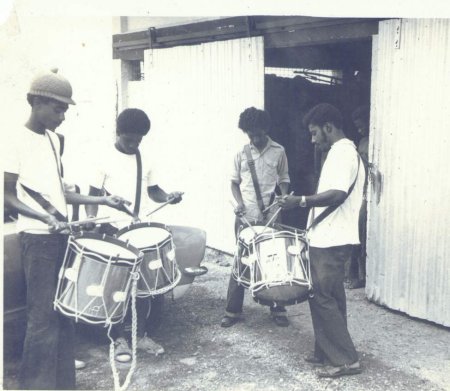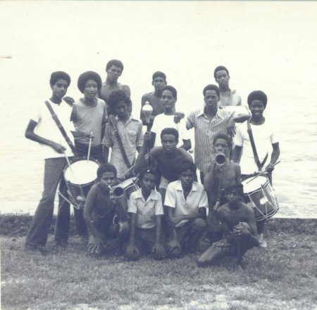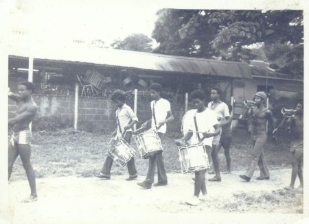 The Formation of the 1st. NDSS Bugle Band - May 1974 Gabriel Woods, Audie Sue, Robert Osbourne, Andre, Big Woods, Anthony Dyer with other members going through the hectic paces