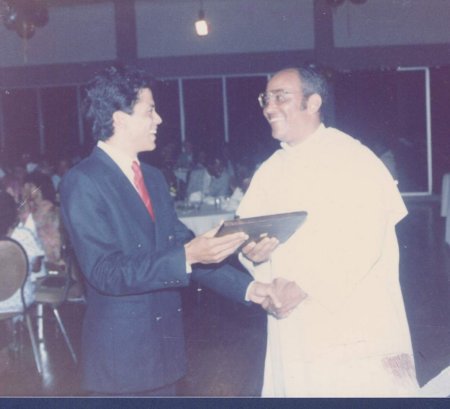 Bro. Michael Samuel accepting an award from GSL Dave Gopaul during NDSS 25th Anniversary function - 1986