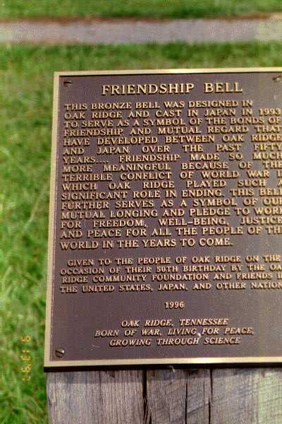 The plaque describing the history and significance behind the Friendship Bell (9/13/97). |