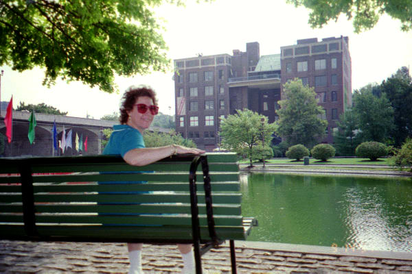 "L" near sculpture on grounds of Knoxville Museum of Art in World's Fair Park (9/14/97). About the sculpture! |