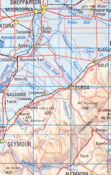 Location of Mt Hickey (Bottom Left) Mt. Wombat (South-East of Euroa) & Mt. Major (East of Shepparton)