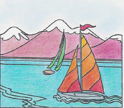 | This is also all one stamp - a stained glass design by The Stamp Pad (you can find their stamps at The Stampin' Place - check the links section). I colored it using regular pencils, and chalk for the sky. Just mount the colored image on cardstock and voila! A quick and easy scenic card. |